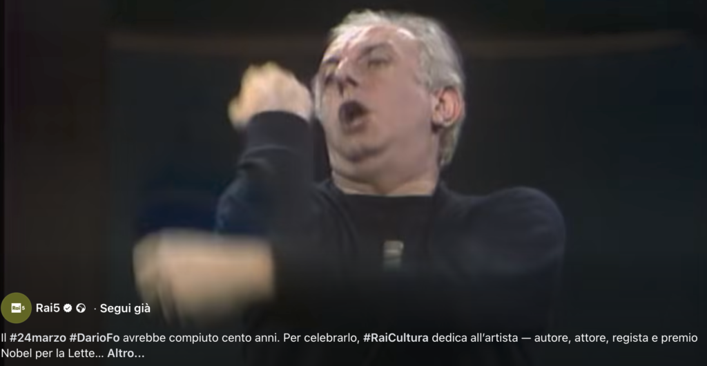 Rai Cultura celebra il Centenario di Dario Fo dedicando all’artista, autore, attore, regista e premio Nobel per la Letteratura 1997, un ciclo di cinque appuntamenti domenicali alle 15.00 su Rai 5.