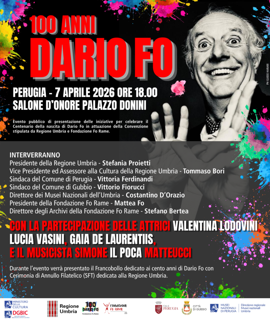 Si terrà martedì 7 aprile 2026 alle ore 18.00 presso il Salone d’Onore di Palazzo Donini a Perugia l’evento pubblico di apertura delle celebrazioni per il Centenario della nascita di Dario Fo, nell’ambito della Convenzione stipulata tra la Regione Umbria e la Fondazione Fo Rame.